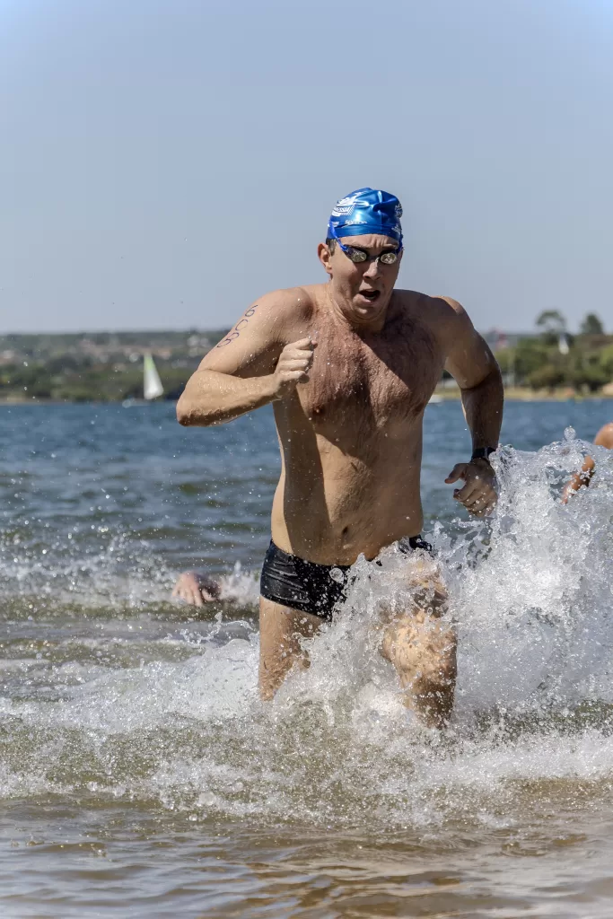 Durante a Travessia do Clube Naval (27/09/2025), registramos a natação de águas abertas como uma jornada de superação em todos os níveis: de quem encarou os 2400 m a quem escolheu percursos menores para estrear ou retornar às provas. Atuamos com três fotógrafos: um com super teleobjetiva para captar o nado em detalhe no meio da água, outro dedicado à linha de chegada e eu, Fred Danin, responsável pelas fotos sociais e pelas tomadas aéreas de drone e FPV. Essa divisão contou a história completa — técnica, emoção e contexto.