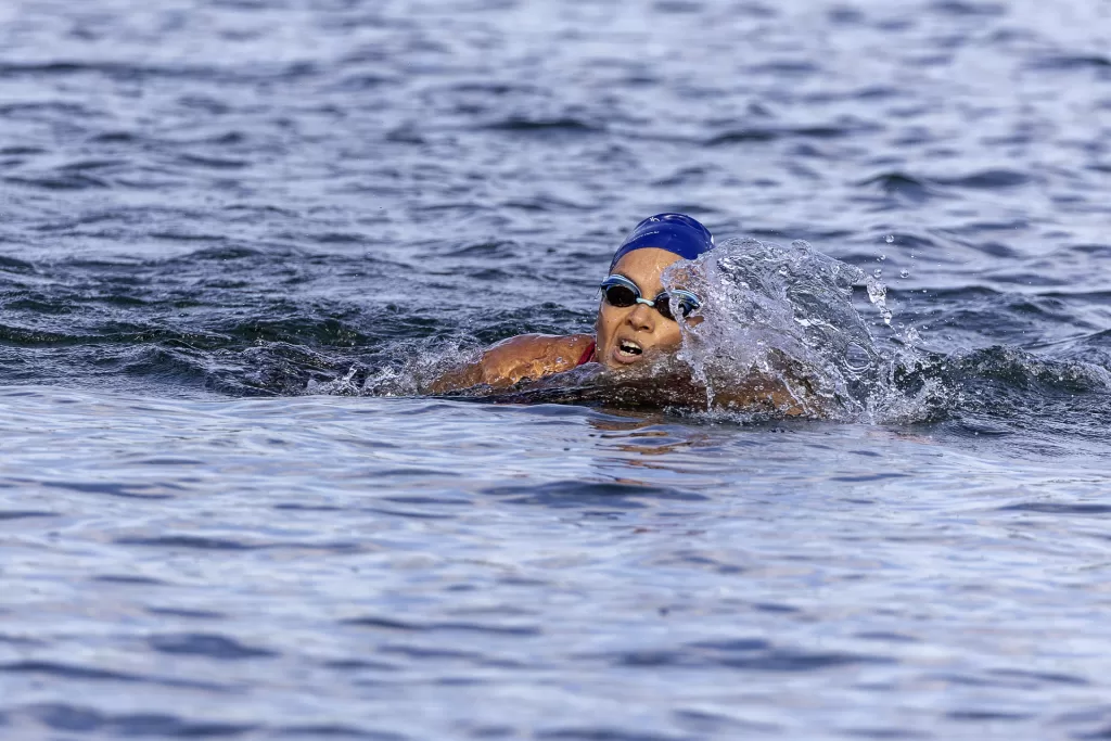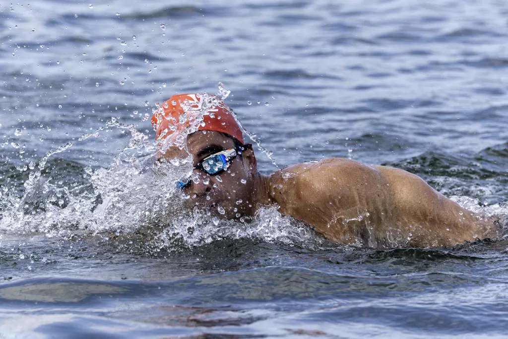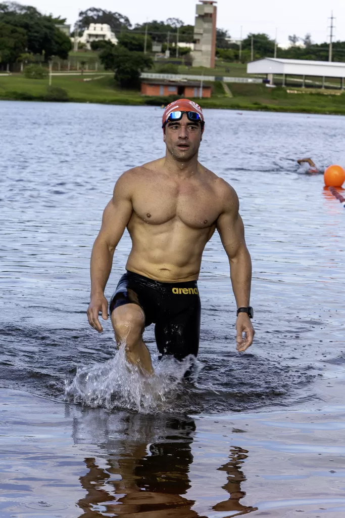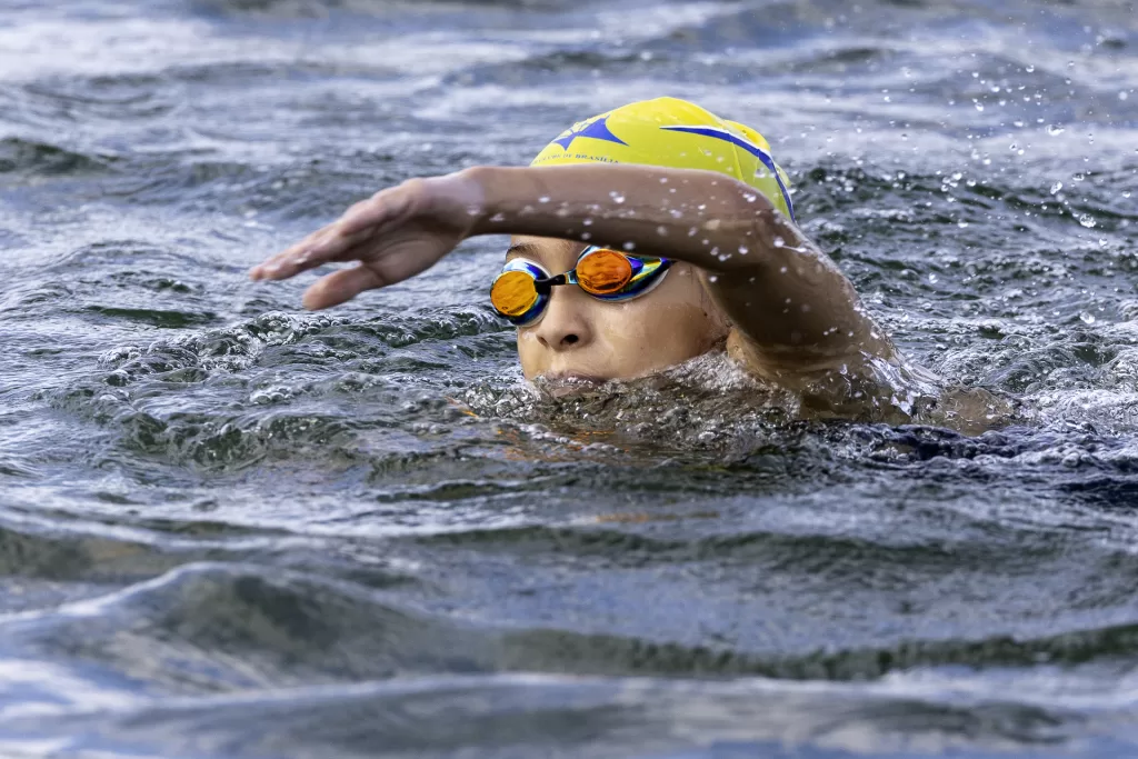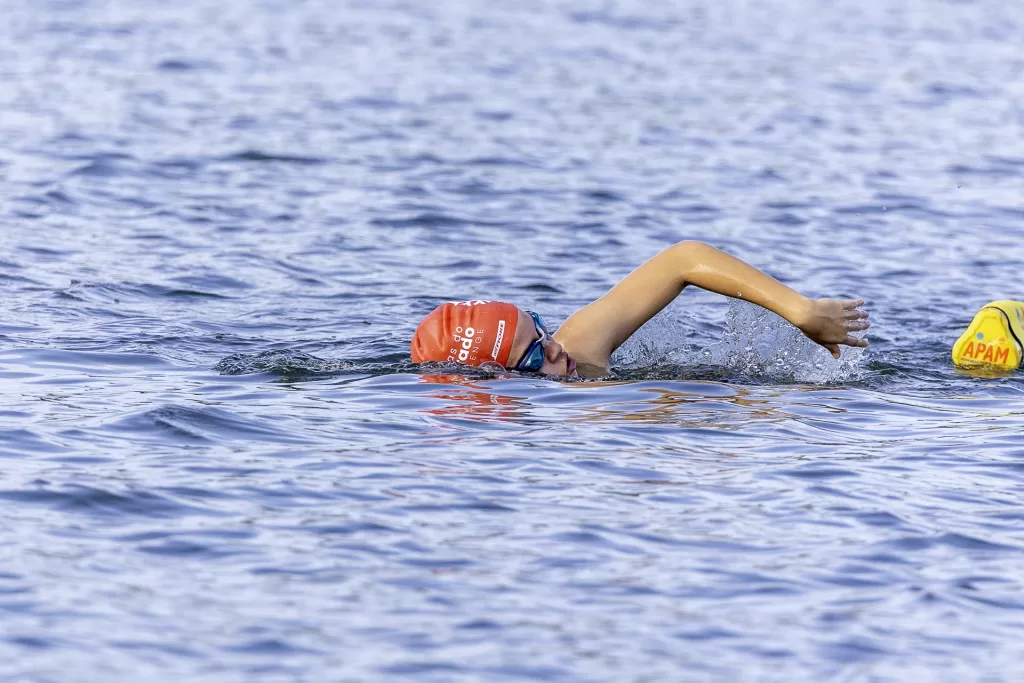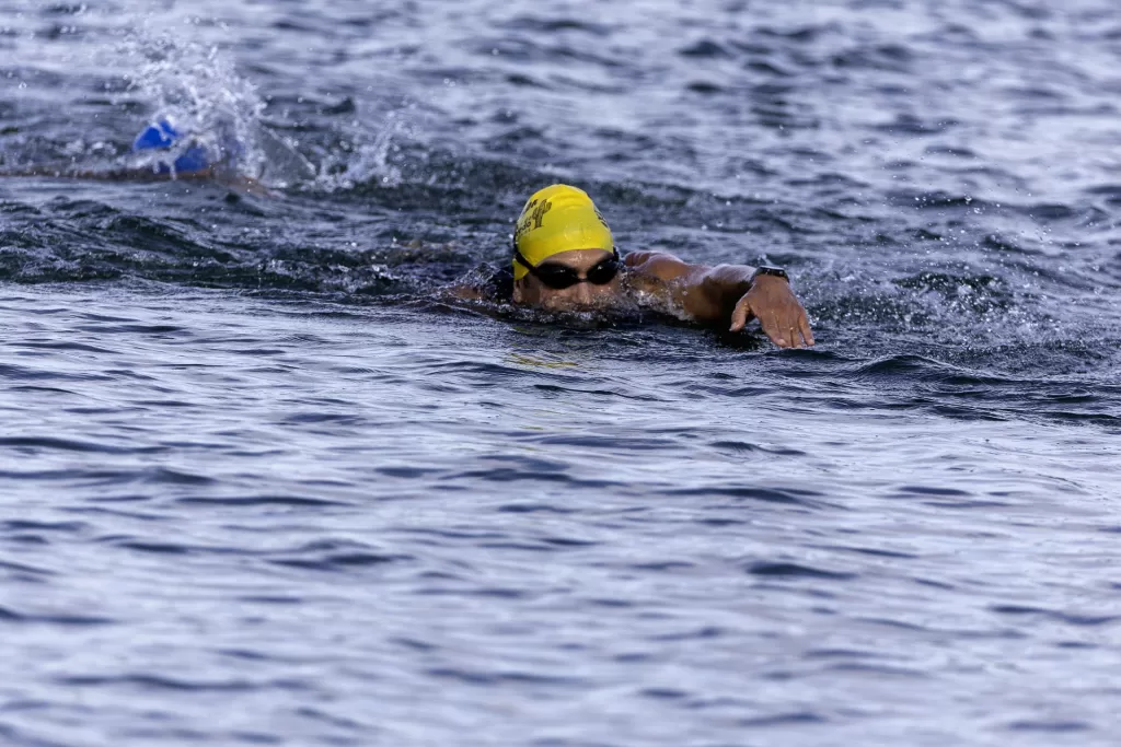 Para isso, estruturamos a cobertura com três profissionais dedicados. Um fotógrafo concentrou-se nas chegadas, capturando expressões de cansaço, alívio e conquista dos atletas ao saírem da água. Um segundo fotógrafo trabalhou com uma superteleobjetiva ao longo do percurso, registrando o nado em close, com destaque para técnica, ritmo e interação com as águas. Em paralelo, um filmmaker/piloto de drone acompanhou a prova do alto, garantindo tomadas aéreas amplas e dinâmicas que mostram a dimensão do evento e a beleza do cenário.